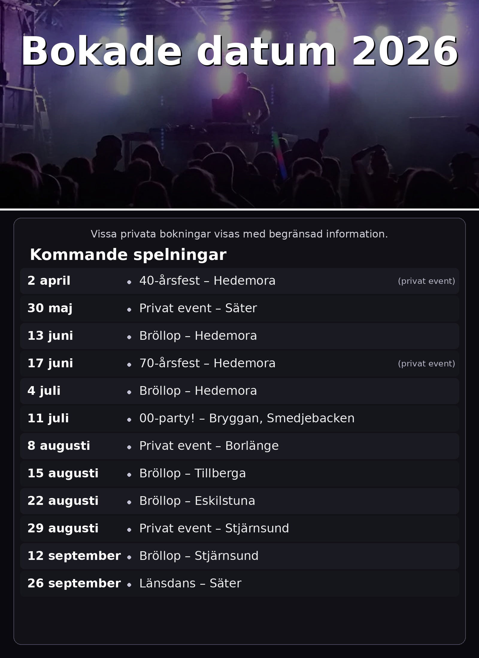 Bokade datum