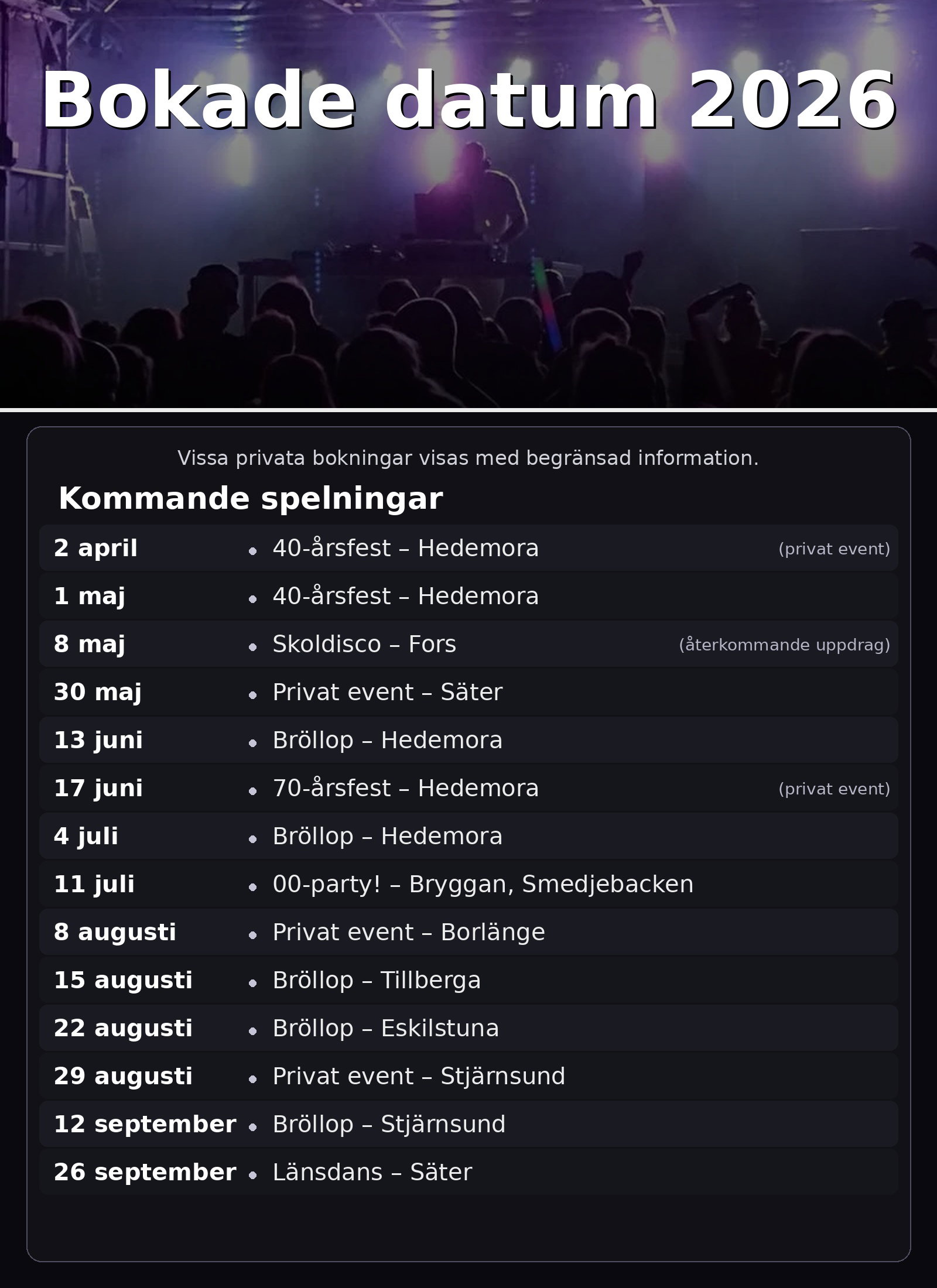 Bokade datum